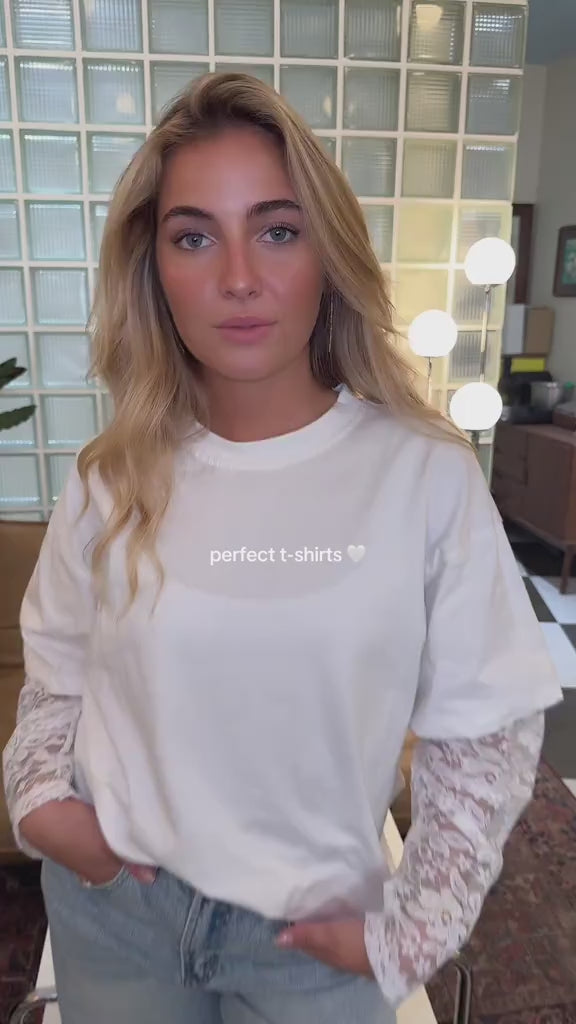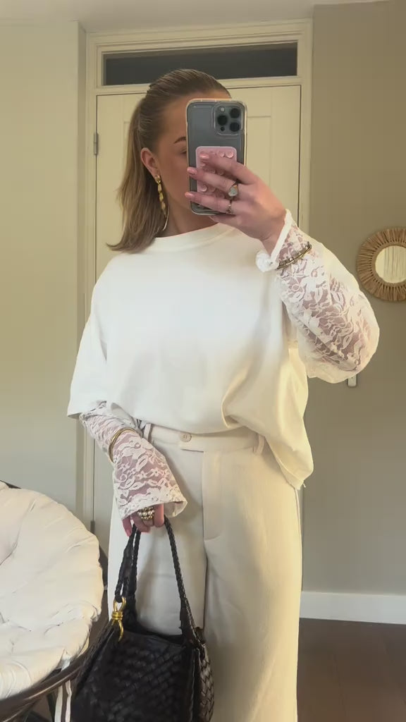 Tee-shirt blanc à manches courtes avec détails en dentelle effet manches longues